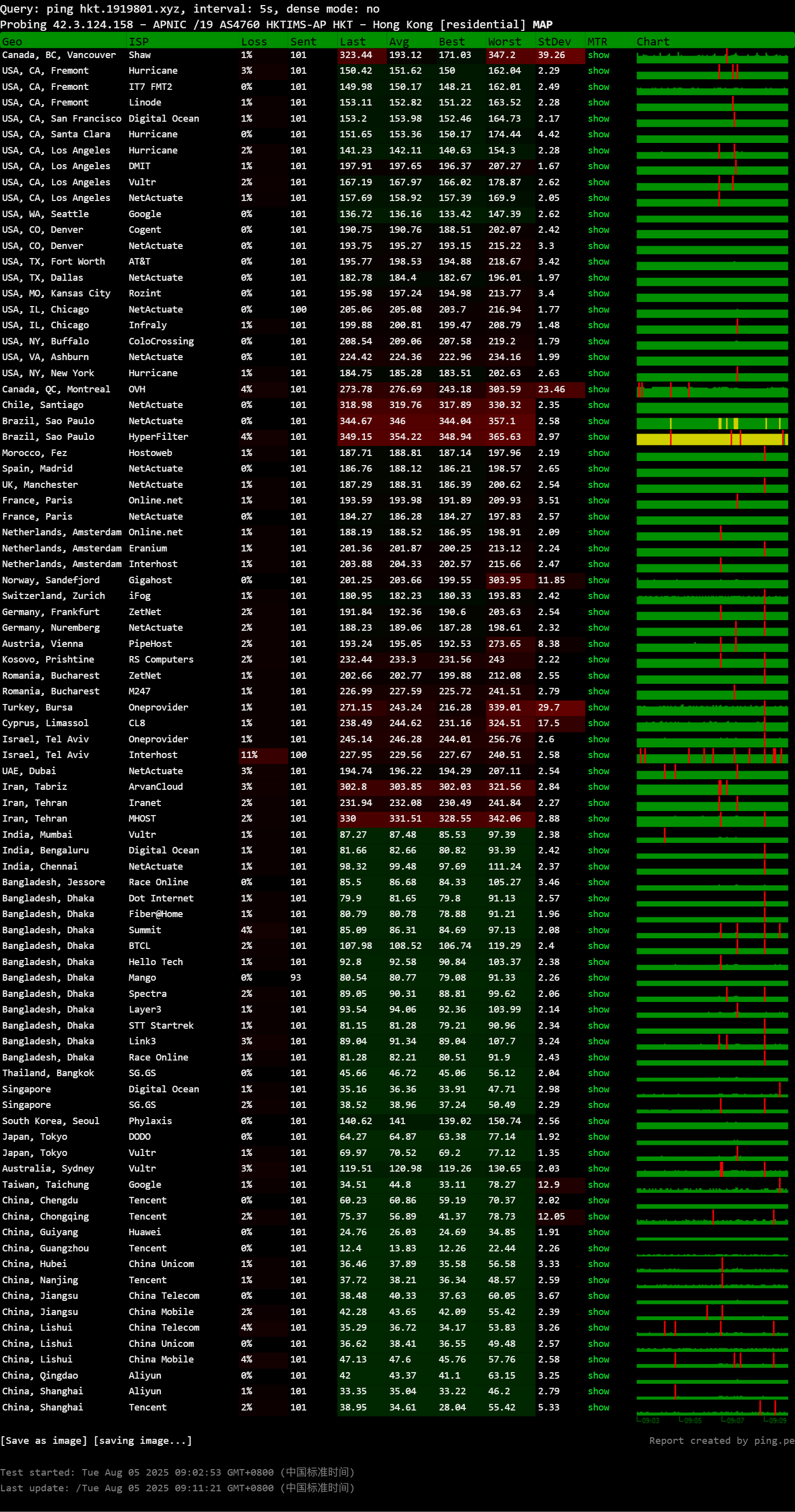| 10 | 223.120.22.193 | – | 中国/香港/移动 | AS58453 | 1% | 98 | 37 | 24 | 40 | 26 |