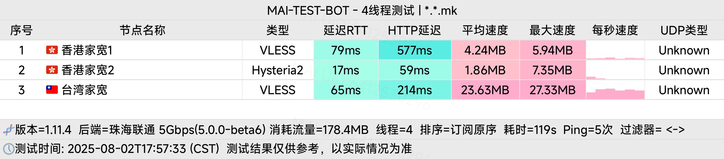 | 中国香港 | 38.08 Mbps | 78.61 Mbps | 6.91 ms | 3.2% |